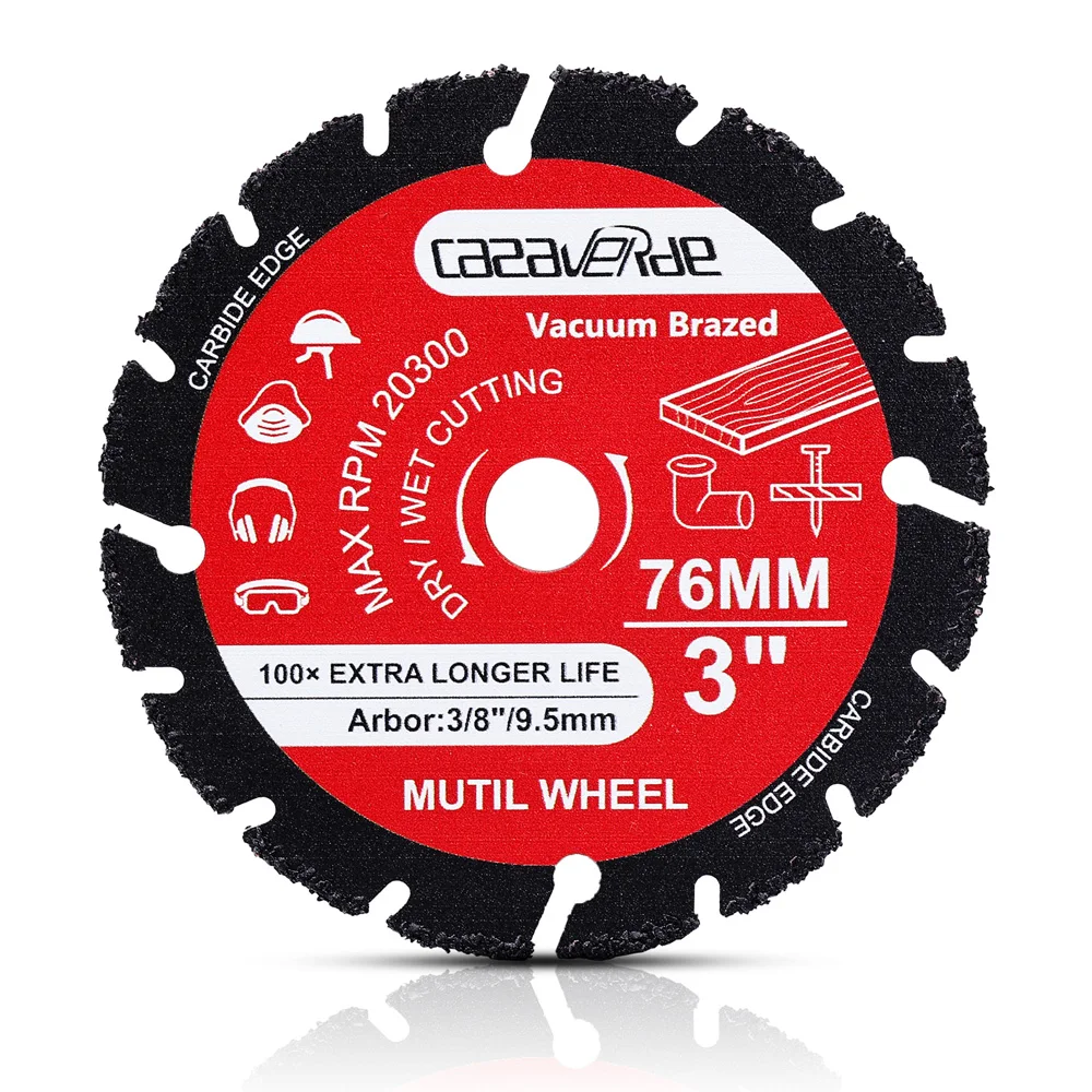 1Pc 76mm Vacuum Brazed Carbide Circular Cutting Disc Wheel Cutting for wWood Boards, Gypsum Boards, Fiberglass Board, Plastics, Etc