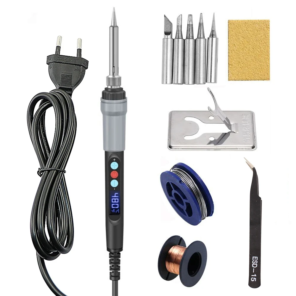 Digital Soldering Iron Set Kit 80W with ON/OFF Switch Adjustable Temperature LCD Welding Tools Ceramic Heater Soldering Tips