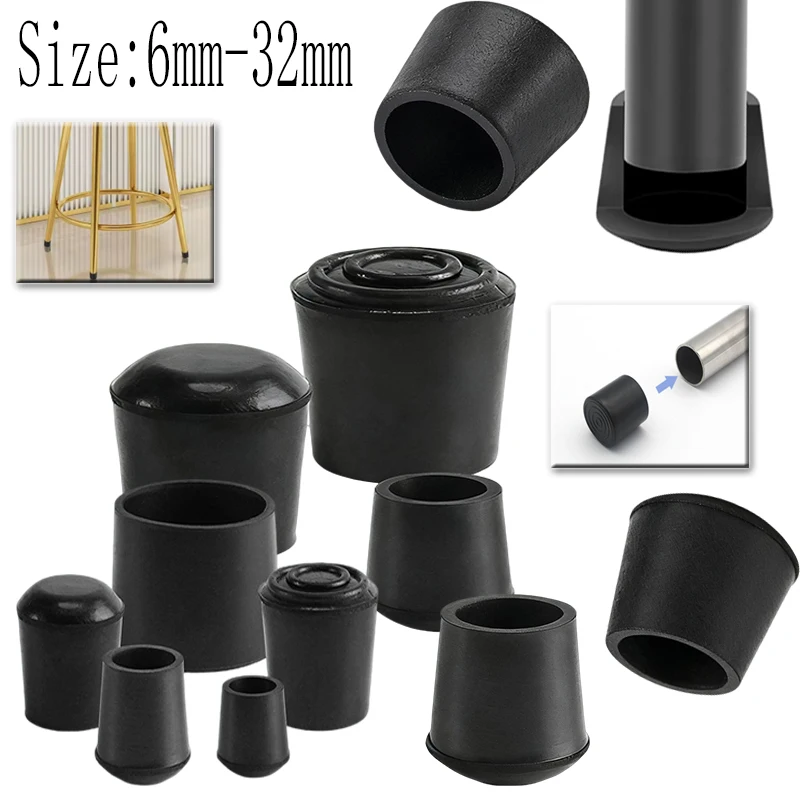 Round Rubber Chair Leg Pad 6-32mm Furniture Leg Table End Plug Pvc Silent Anti-Slip Floor Protection Cap Foot Cover