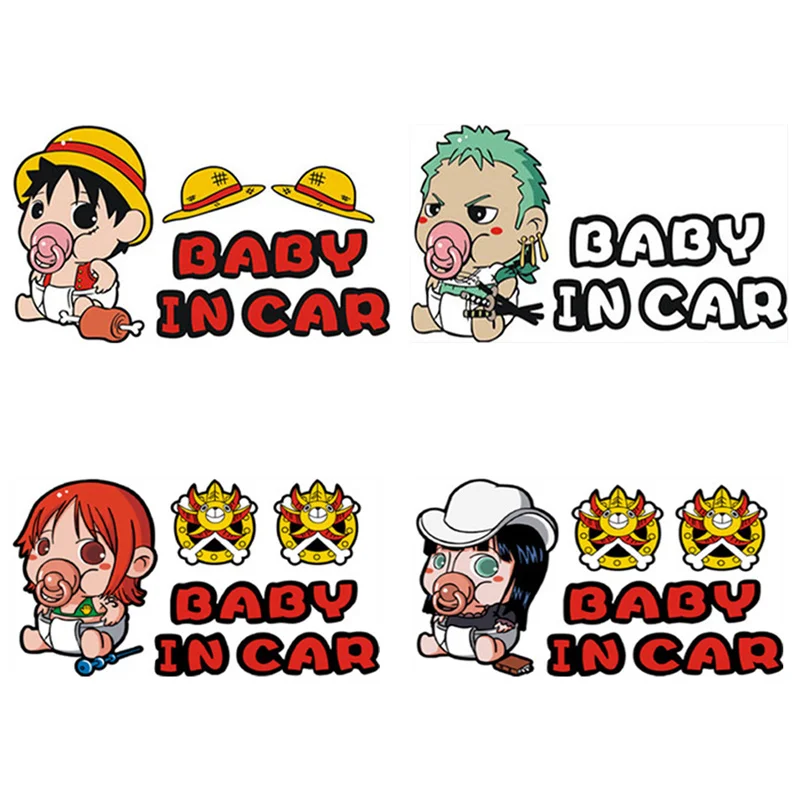 Baby on Board Warning PVC Decals Funny ONE PIECE Anime Sticker Waterproof Auto Decorative Films Accessories