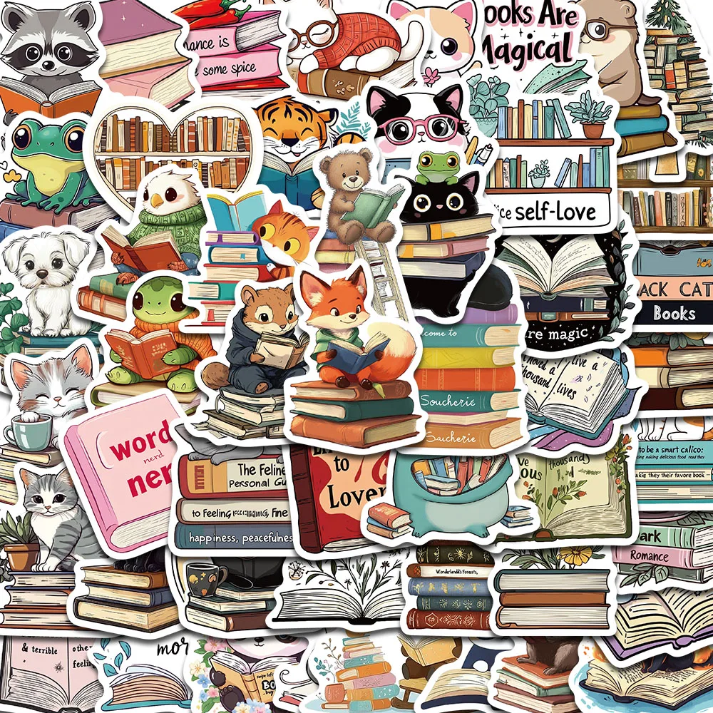 50PCS Animal Reading Stickers Notebook Cafe Aesthetic For Laptop Luggage PVC Home Decorative Cafe Waterproof DIY Sticker