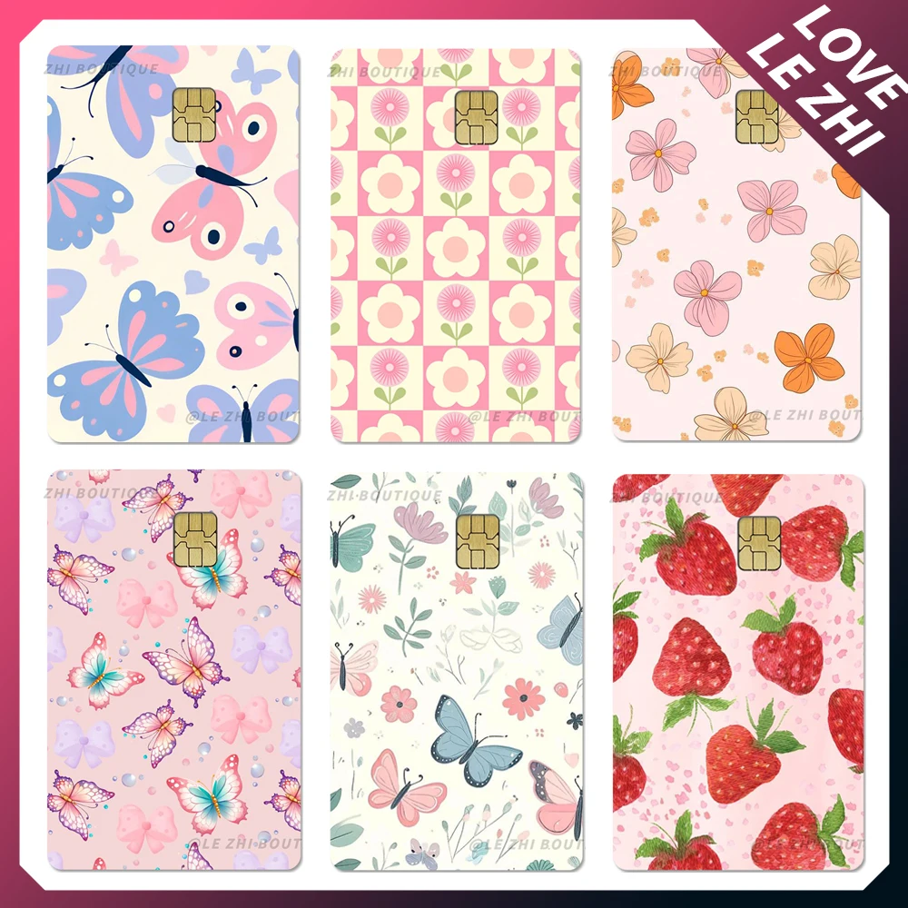 Kawaii Animal Plant Credit Card Debit Card Pvc Film Sticker Colorful Strawberry Butterfly Flowers Waterproof Small Chip Sticker