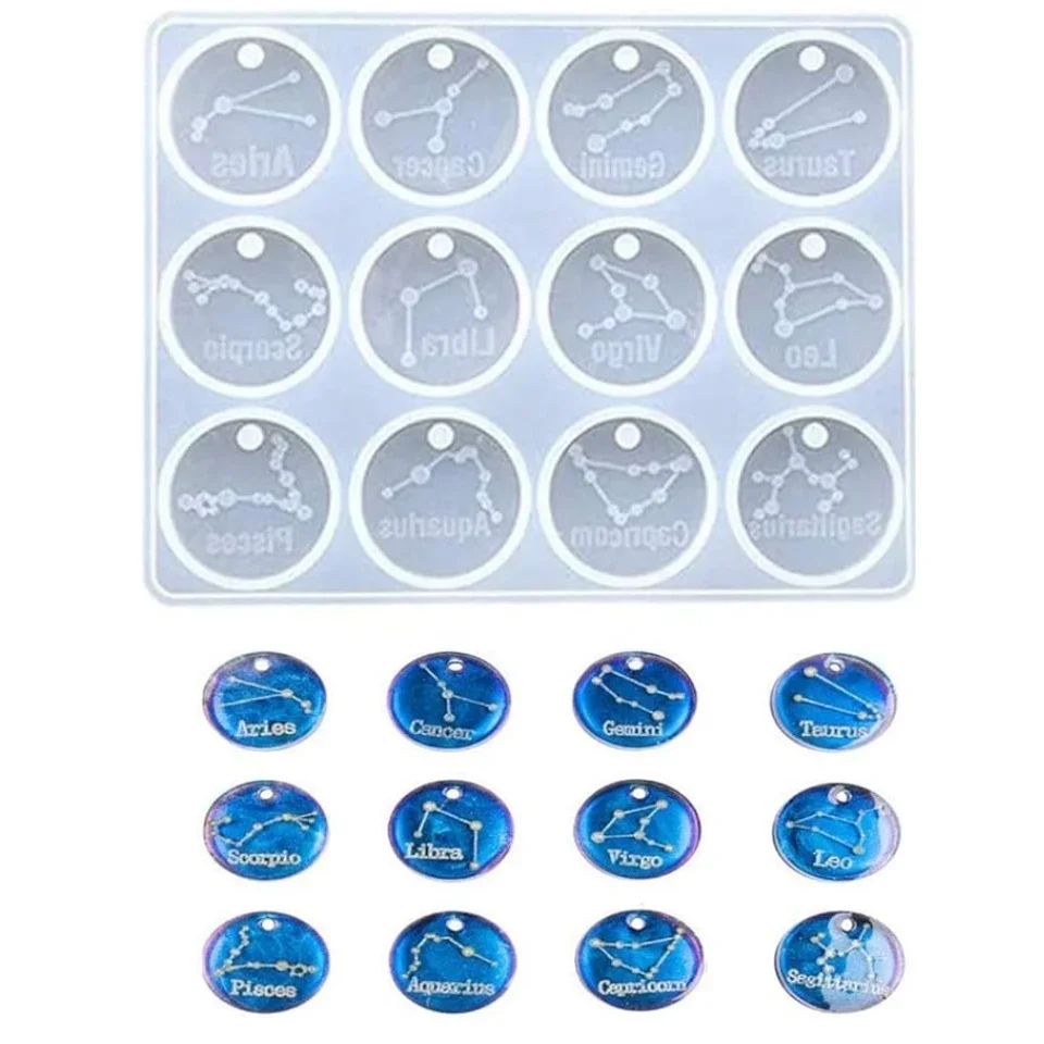 12 Zodiac Constellation Resin Molds, Round Zodiac Sign Epoxy Resin Molds for Jewelry Making DIY Craft, Resin Keychains, Clay Cra
