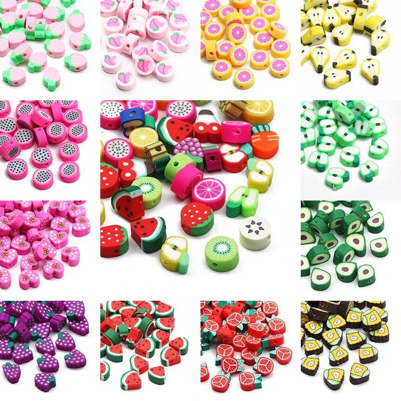 Cartoon Fruits Clay Beads Peach Grape Corn Orange Pear Strawberry Apple Pattern Polymer For DIY Jewelry Making Handmade Supplies  Read more