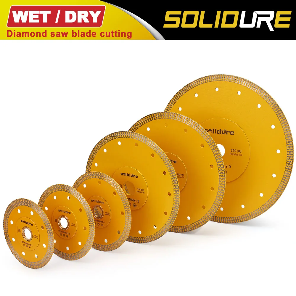 Solidure Brand 105mm-250mm with Super Thin X Shape Diamond Porcelain Tile Cutting Blade for Cutting Porcelain Tiles