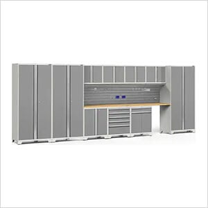 NewAge Garage Cabinets PRO Series Platinum 14-Piece Set with Stainless Steel Tops and Slatwall Hook Kit