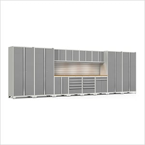 NewAge Garage Cabinets PRO Series Platinum 14-Piece Set with Bamboo Tops, Slatwall and LED Lights