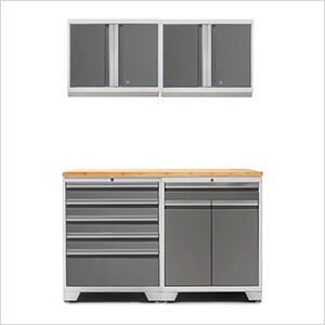 NewAge Garage Cabinets PRO Platinum 5-Piece Workbench Set with Bamboo Top