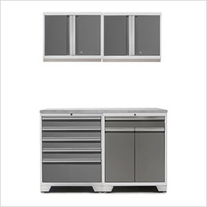 NewAge Garage Cabinets PRO Platinum 5-Piece Garage Cabinet Set with Stainless Steel Top