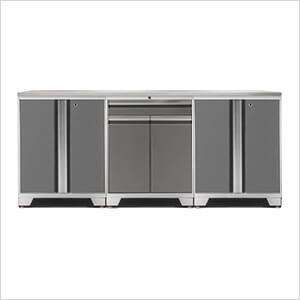 NewAge Garage Cabinets PRO Platinum 3-Piece Workbench Setup with Stainless Steel Top