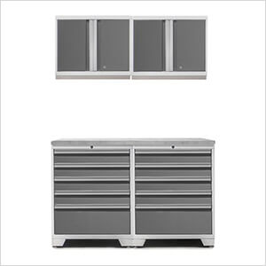 NewAge Garage Cabinets BOLD Series Platinum 7-Piece Set with Stainless Steel Top