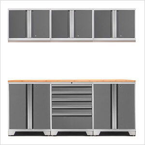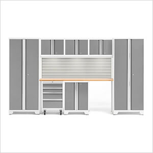 NewAge Garage Cabinets BOLD Series Platinum 9-Piece Set with Bamboo Top and Backsplash