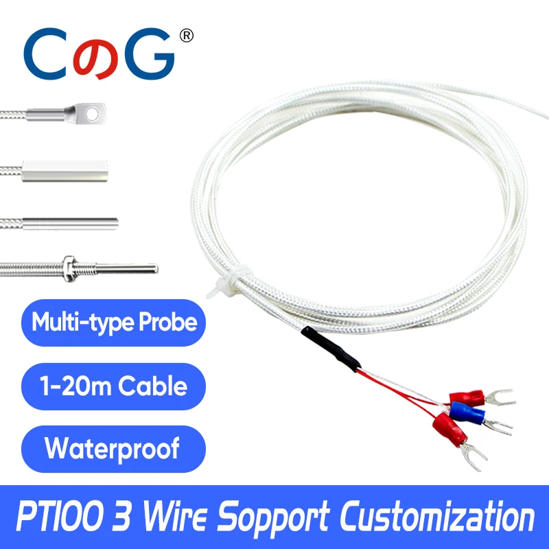 CG PT100 Temperature Sensor Platinum RTD Multitype Probe with High Precision Three-wire PFTE Cable Waterproof and Anti-corrosion