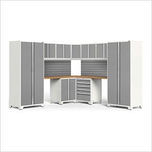 The NewAge Products tool cabinet storage set is constructed with durable 18-gauge steel frames and 19-gauge double-wall drawer fronts, highlighted by a bamboo work surface that combines style and practicality.