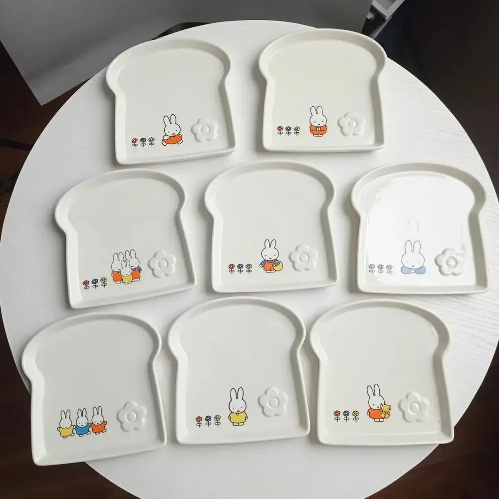 Miffy Rabbit Ceramic Plate Anime Cute Cartoon Creative Simple Toast Shape Kawaii Vegetable Plate Picnic Utensils Home Gifts
