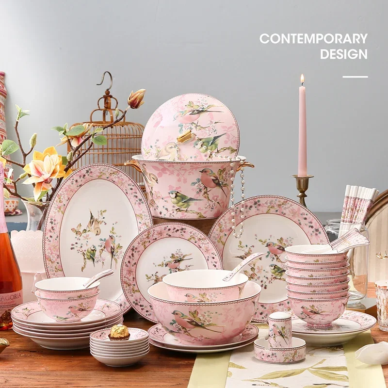 Luxury Dining Room Dinnerware Sets Home Christmas Kitchen Bone China Dinnerware Plates Guests Bajillas De Cocina Dinner Sets