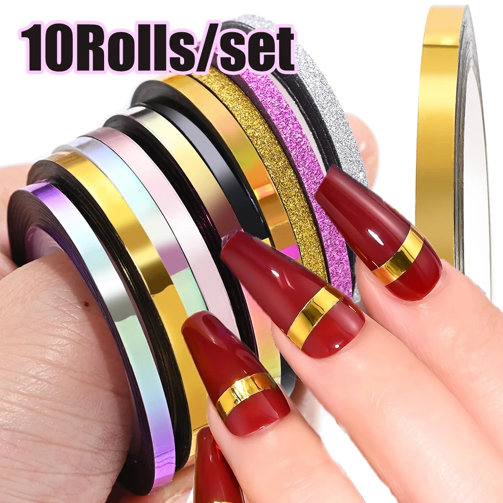10Rolls/set 3D Metallic Nail Striping Line 1MM 2MM 3MM Gold/Silver/Colors Laser Striping Tape Line Nail Decal DIY Line Sticker  Read more