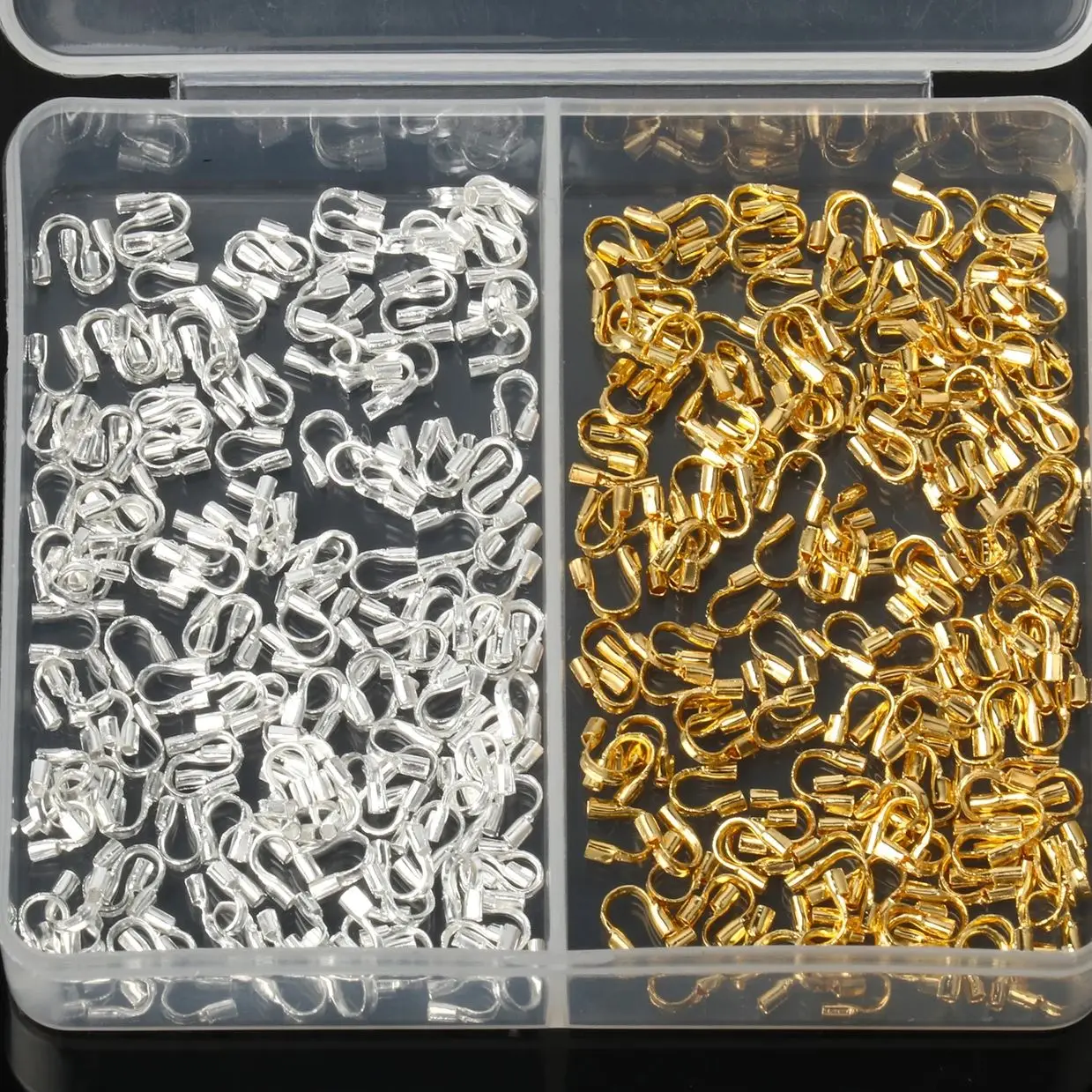 300Pcs/Lot 4.5x4mm Gold and Silver Color Wire Protectors Loops U Shape Connectors With Boxed For Jewelry Making Accessories