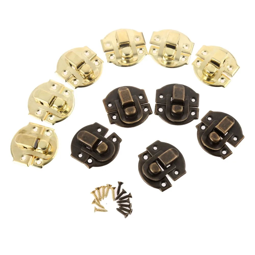 10Pcs Antique Gold Box Hasps Iron Lock Catch Latches for Jewelry Chest Box Suitcase Buckle Clip Clasp Vintage Hardware 27*29mm