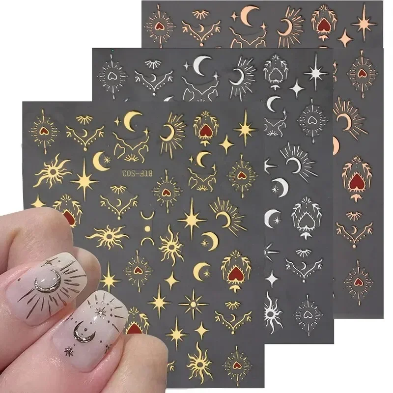 3 Sheets 3D Stickers for Nails Gold Sliver Rose Gold Laser Butterfly Moon Sun Adhesive Sliders DIY Nail Art Decals Accessories