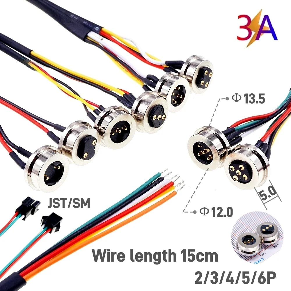 Magnetic Circular PogoPin Connector 2A Male Female Metal Spring Loaded 1/2/3/4/5/6 Pin DC Power Charger Wire JST SM Gold Plated