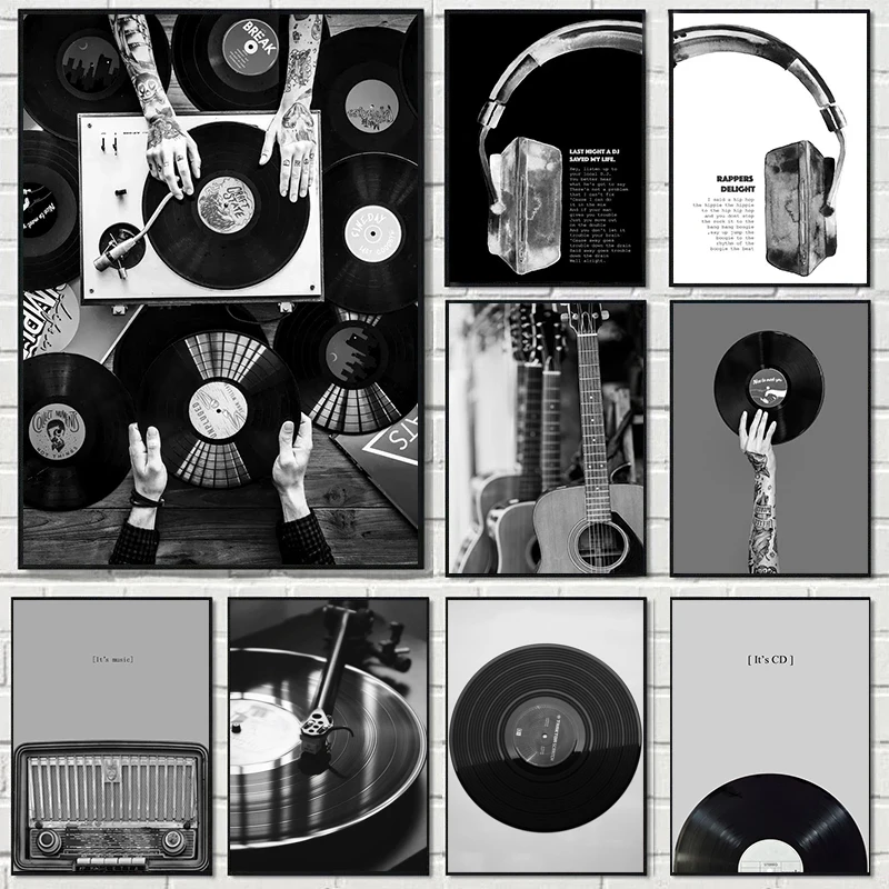 Vintage Music Vinyl Record Poster Wall Art Black and White Picture Headphone Lyrics Canvas Painting Prints Music Studio Decor  Read more