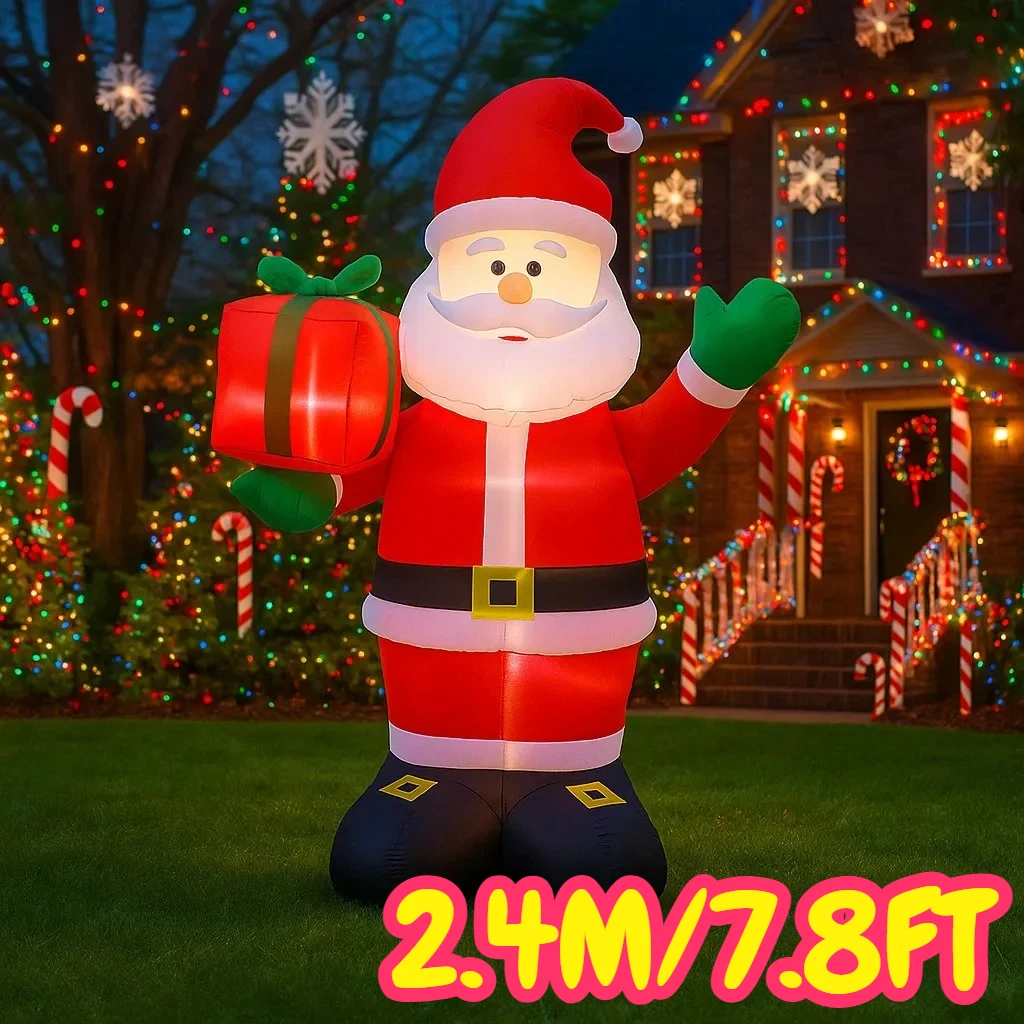 2.4M/7.8FT Christmas Decorations Inflatable Toy Santa Claus Gift Home Yard with LED Light Party Christmas Outdoor Decor Toy