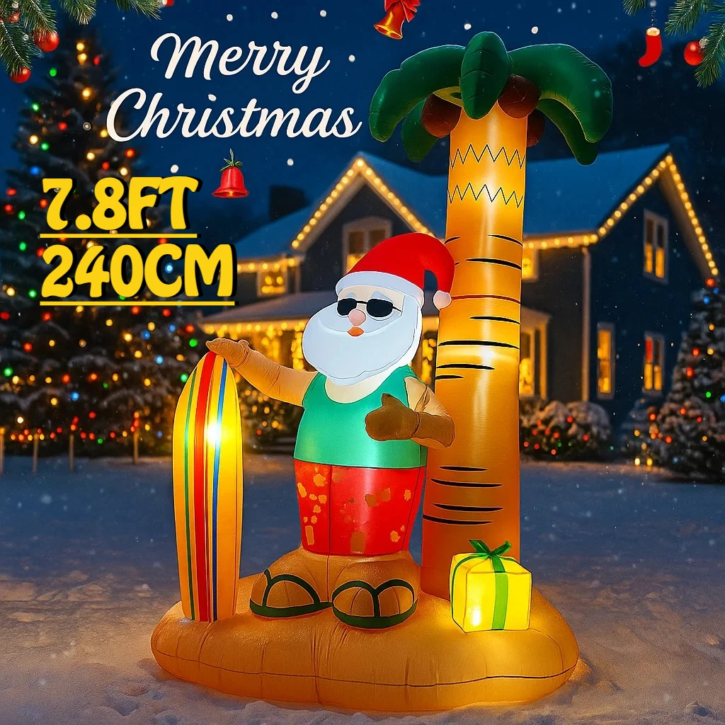 7.8FT Santa Claus Surfing Inflatable Christmas Decorations Ornaments Light Outdoor Decoration Yard Holiday Party Decor Toys Prop