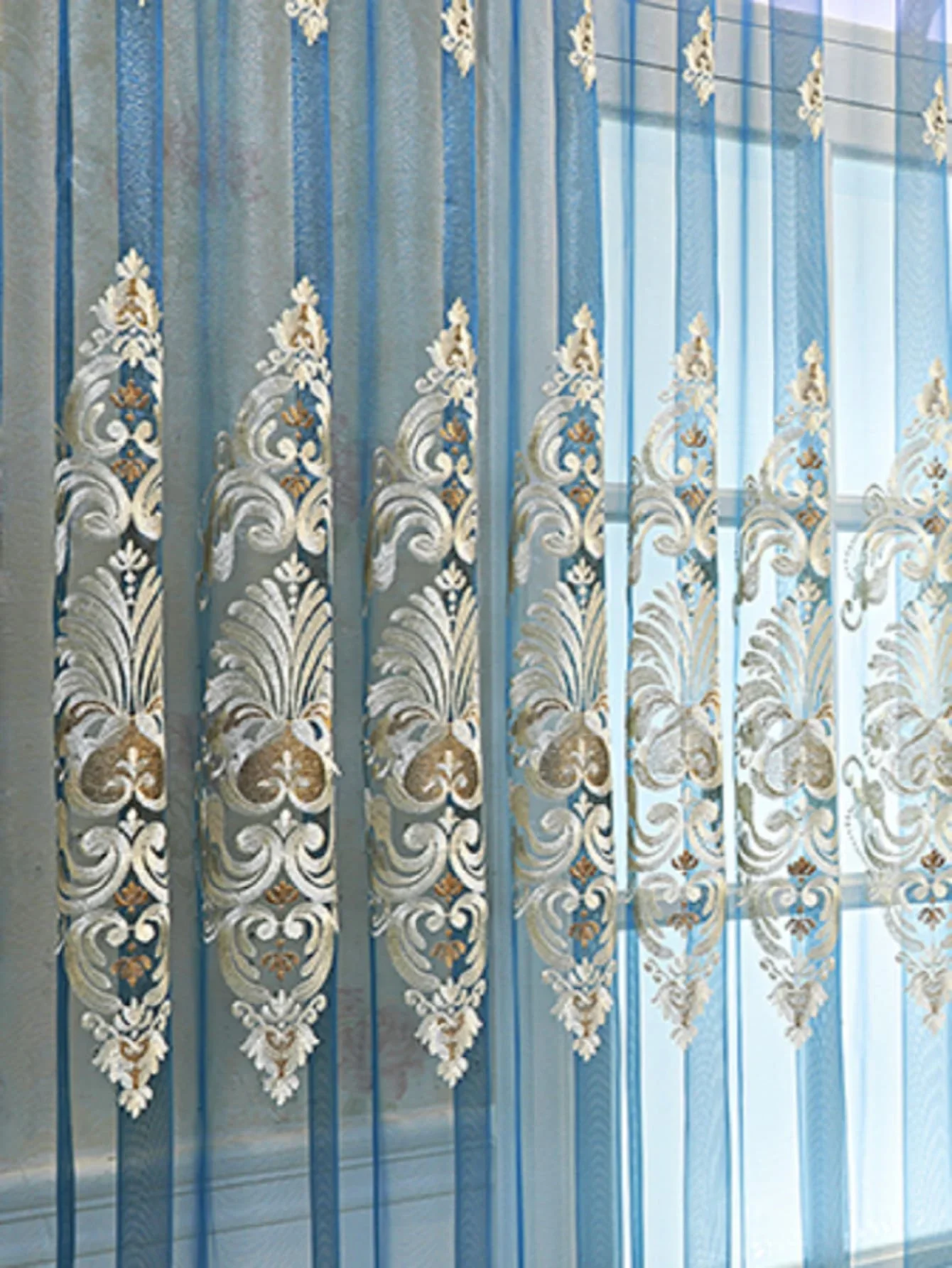 1PC Curtains, Luxury vintage-style embroidered curtains with 3D relief patterns, dual-layer design for privacy and light control