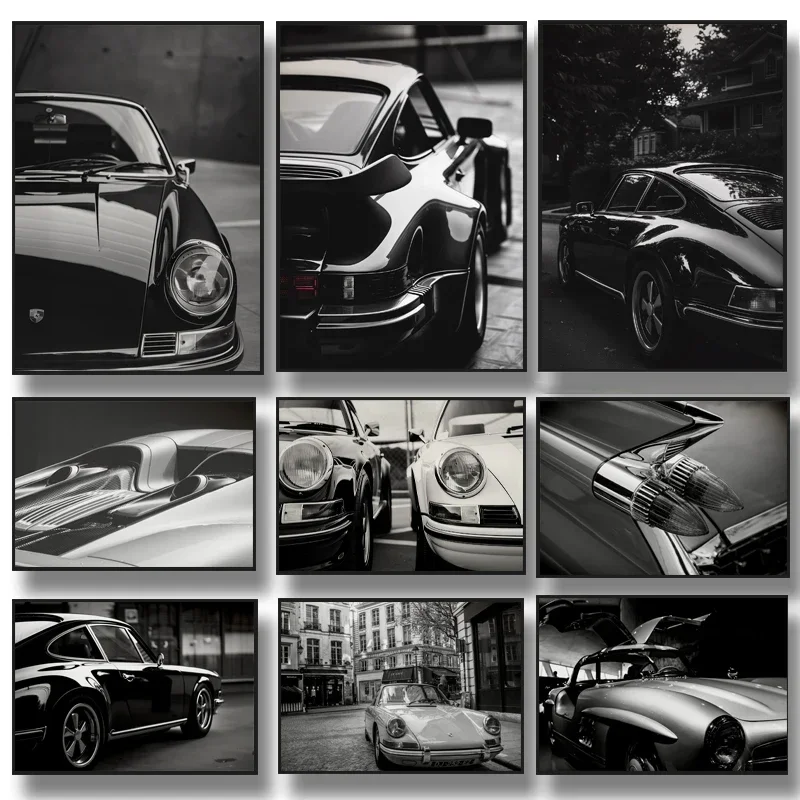 Retro Abstract Black and White Modern Photography Luxury Car Premium Poster Canvas Painting Wall Art Pictures Home Decor