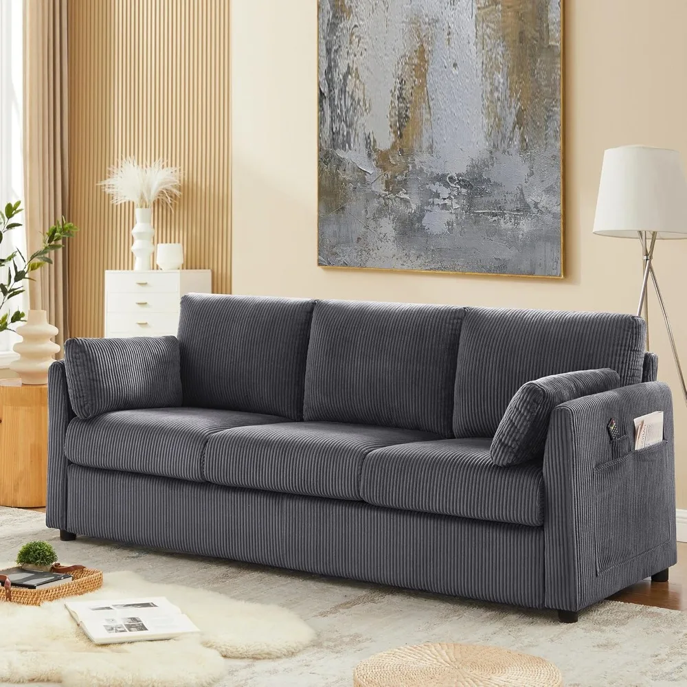 Luxury 3 Seater Couches for Living Room – 79" Modern Corduroy Sofa with 2 Pillows & Storage Pockets, Small Couches for Apartment
