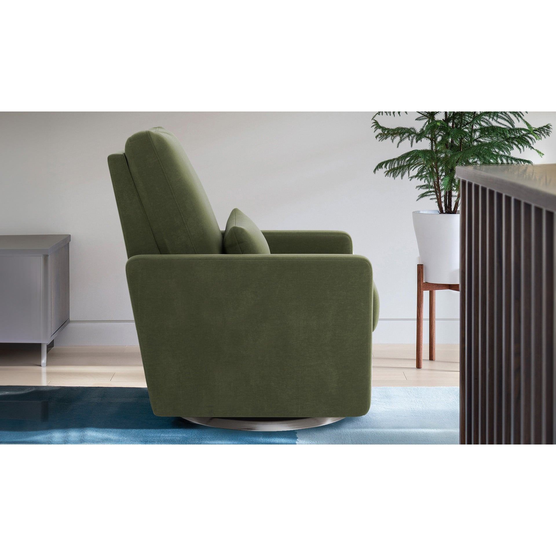 Swivel Recliner with Ottoman, PU Leather & Wood Base Reclining Chair with Footrest, Ultra-Plush Double Foam for Living Room