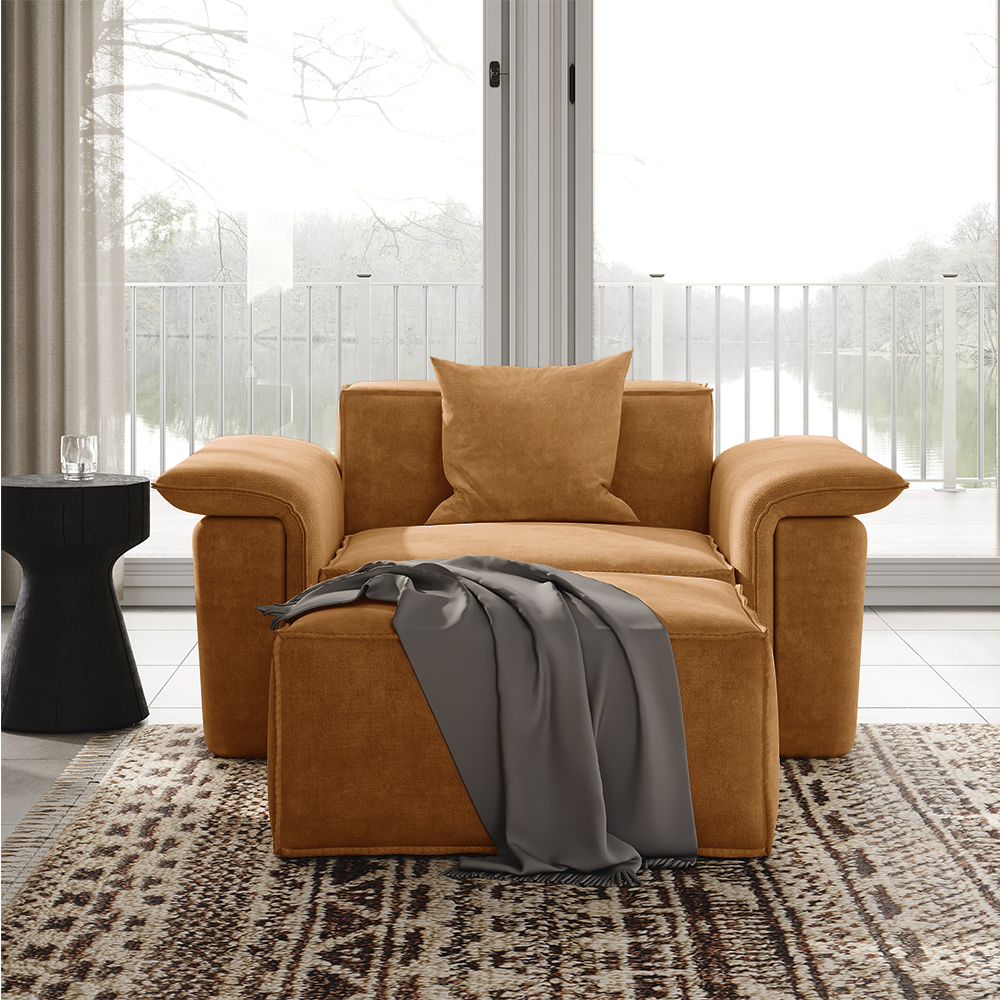 51.96" Minimalist Accent Chair with Ottoman, Deep Seat Couch, Anti-scratch and Water-proof, Yellow