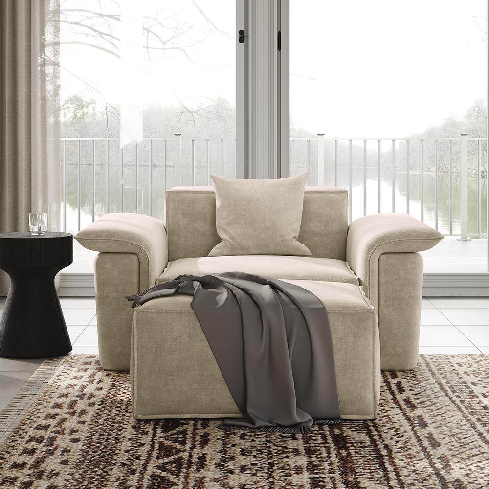 51.96" Minimalist Accent Chair with Ottoman, Deep Seat Couch, Anti-scratch and Water-proof, Beige