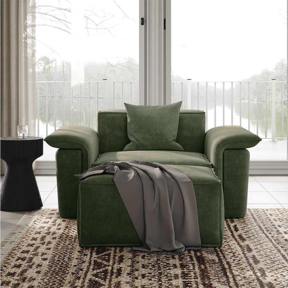 51.96"Curved Arm Accent Chair with Ottoman, Deep Seat Couch, Anti-scratch and Water-proof, Green