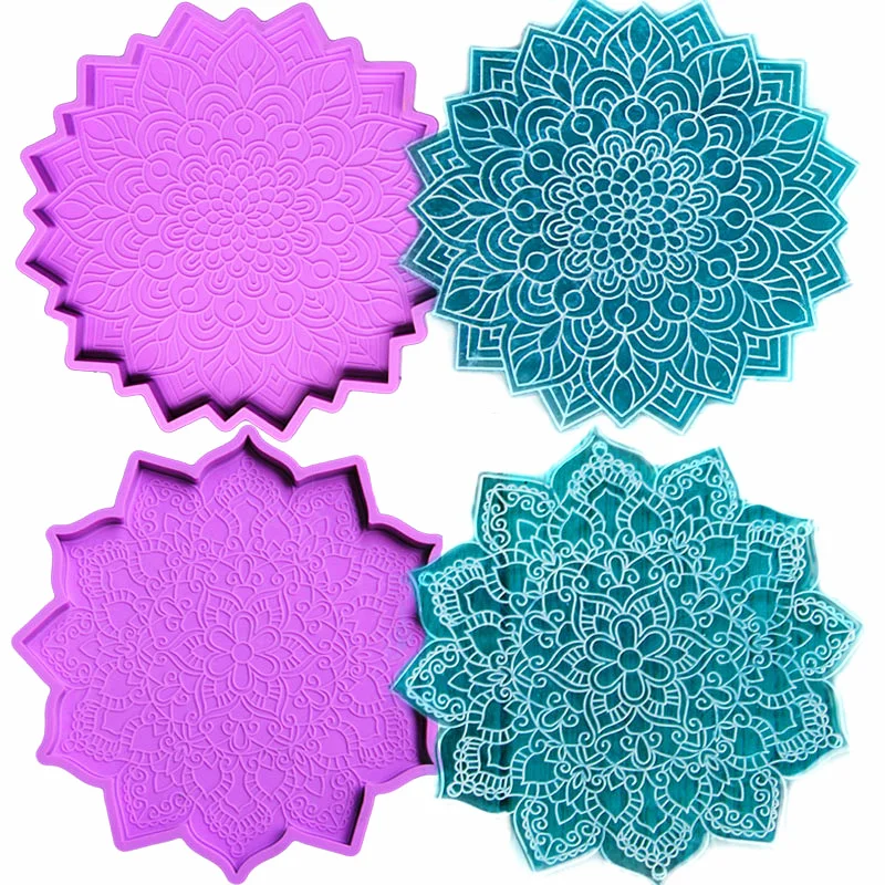 Mandala Coaster Epoxy Resin Mold Round Tray Cup Mat Casting Silicone Mould Home Decoration DIY Handwork Crafts