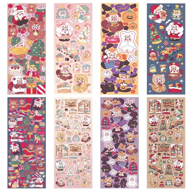 European Style Sticer Christmas Halloween Series Sticker Cute Cartton Bunny Puppy Tree Sticker for DIY Decor Scrapbook Journal
