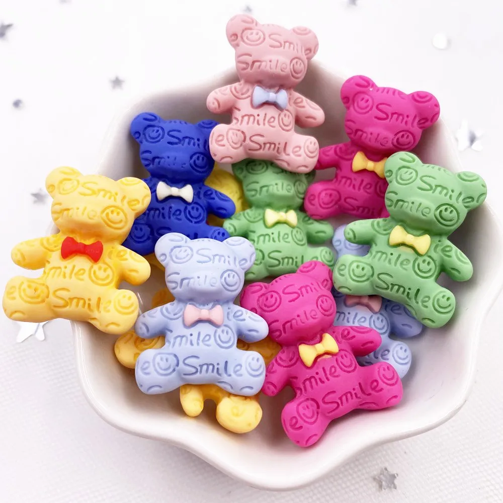 10Pcs Resin Colorful Lovely Bear Flatback Cabochon Stone Figurines Christmas Home Decor Accessorie DIY Scrapbook Crafts OM04
