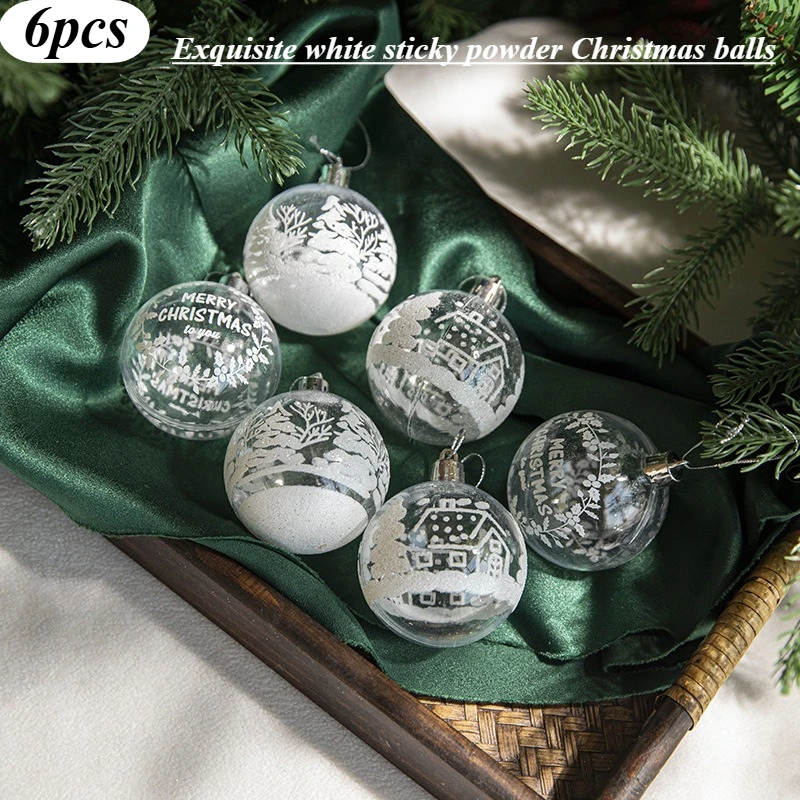 6pcs Christmas Ball Transparent Acrylic Painted Christmas Ball Tree Decorative Pendant Snowflake Ball Christmas Party Decoration