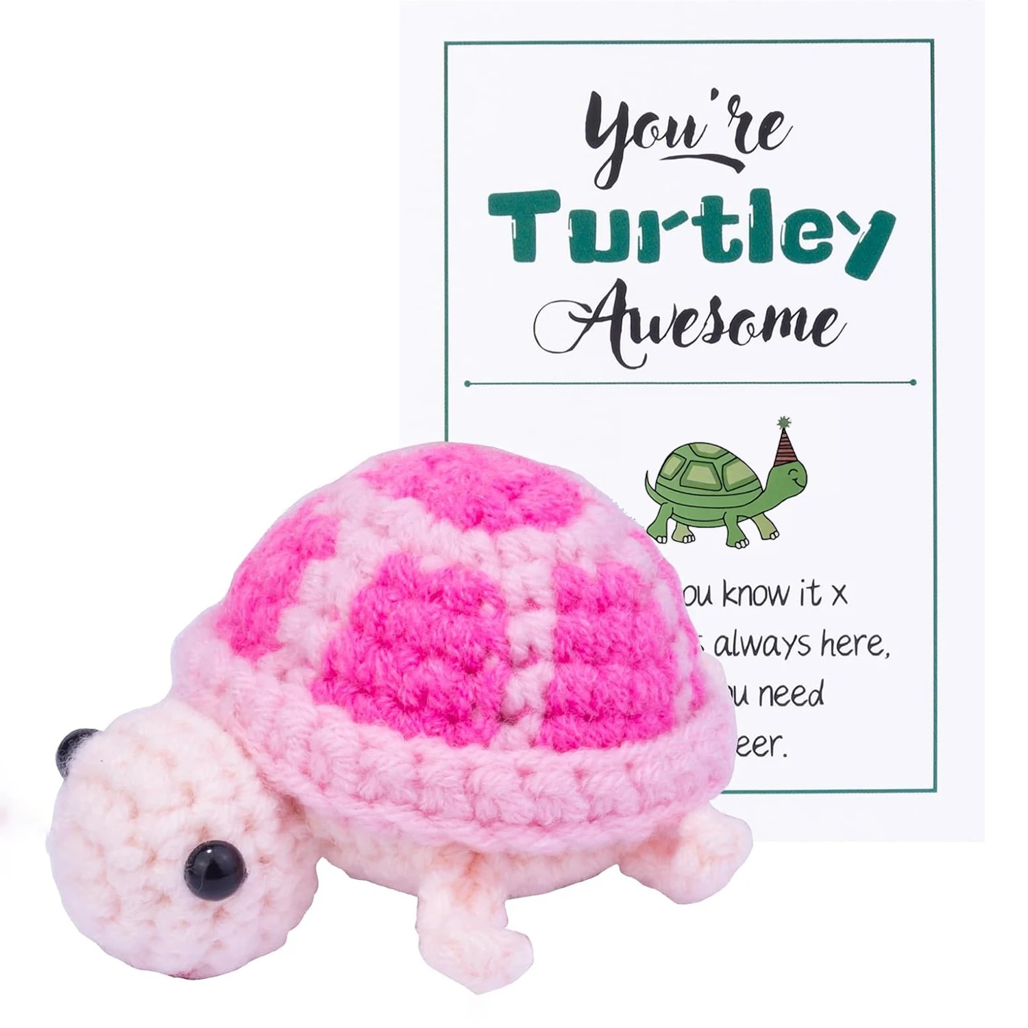 1Pc Stuffed Crochet Gift, Handmade Emotional Support Turtle Ornament with Positive Card, Inspirational Room Decor, Encouragement for Friend, Family, Halloween, Christmas Gift