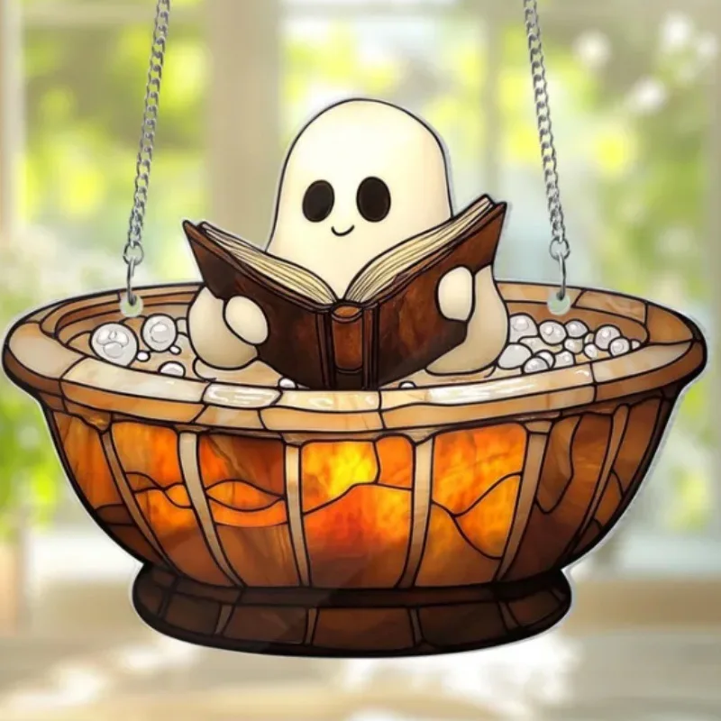 Halloween Ghost Bath Decor 2D Acrylic Cute Hanging Ornaments Reading Book Home Bedroom Living Room Window Decoration