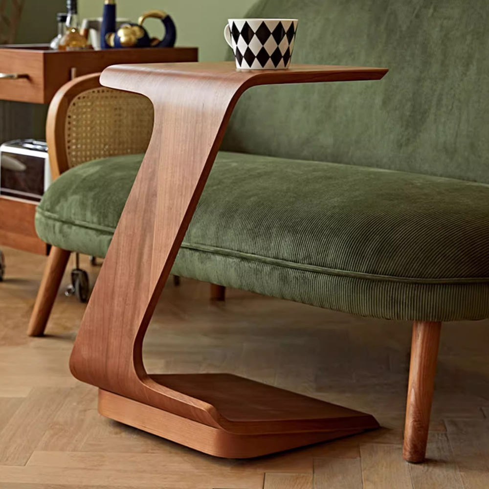 2 PCS 15" Modern C-Shaped Side Table, Walnut Color End Table, for Living Room, Fits Easily by Sofa or Bed