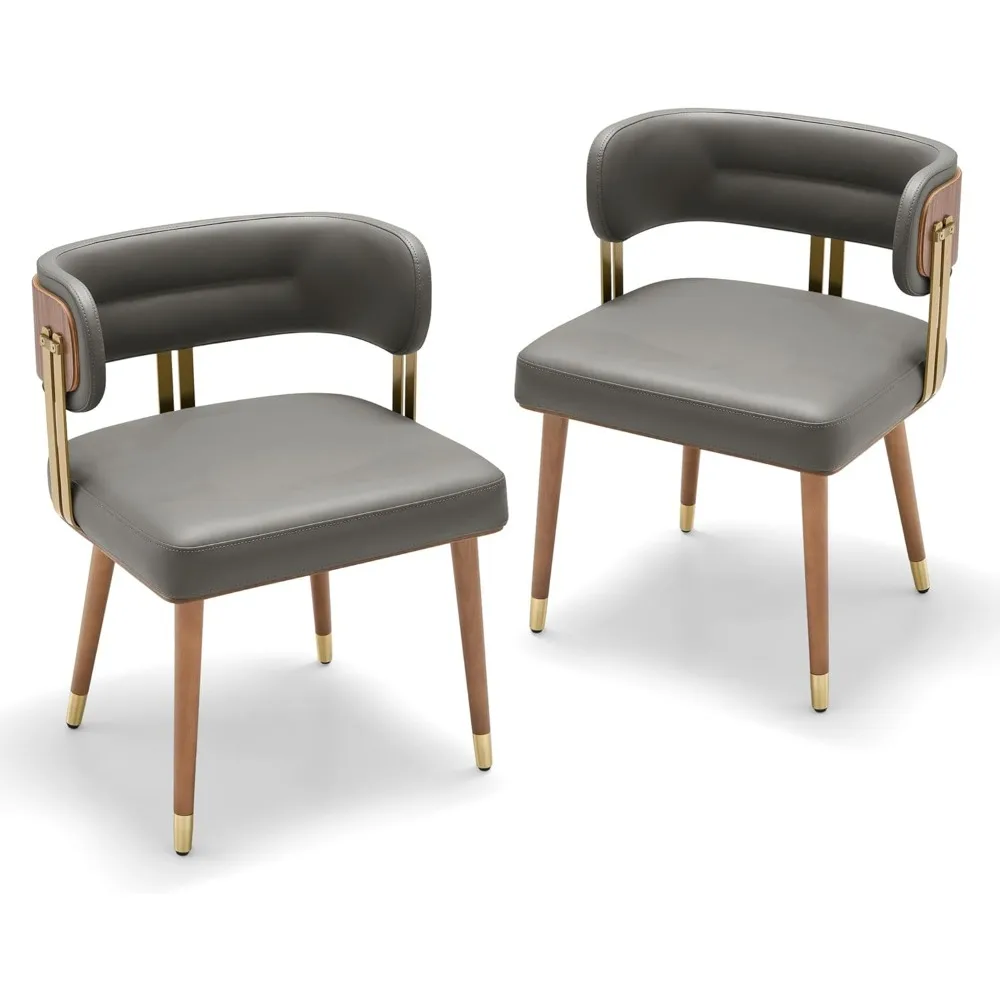 Walnut Leather Dining Chairs Set of 2 - Modern Kitchen Chairs with High-Resilience Foam Cushion and Stainless Steel Fram