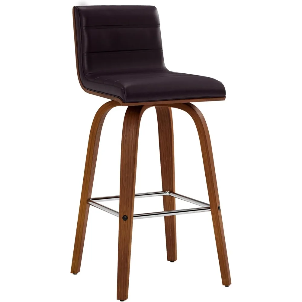 Vienna 26" Counter Height Swivel Brown Faux Leather and Walnut Wood Bar Stool
