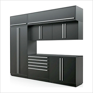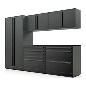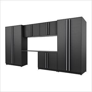 Proslat Garage Cabinets 8-Piece Mat Black Cabinet Set with Silver Handles and Powder Coated Worktop