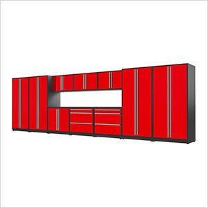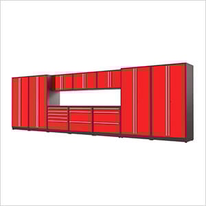 Proslat Garage Cabinets 12-Piece Glossy Red Cabinet Set with Silver Handles and Powder Coated Worktop