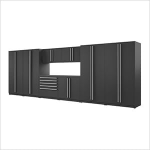 Proslat Garage Cabinets 12-Piece Mat Black Cabinet Set with Black Handles and Powder Coated Worktop