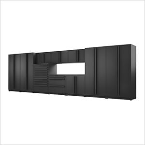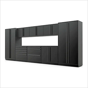 Proslat Garage Cabinets 11-Piece Mat Black Cabinet Set with Black Handles and Powder Coated Worktop