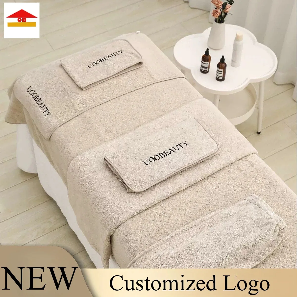 Customized Logo Beauty Salon Specific Towel Coral Fleece Bath Skirts Perforated Bedding Large Bath Towels Clinics Nails Esthetic