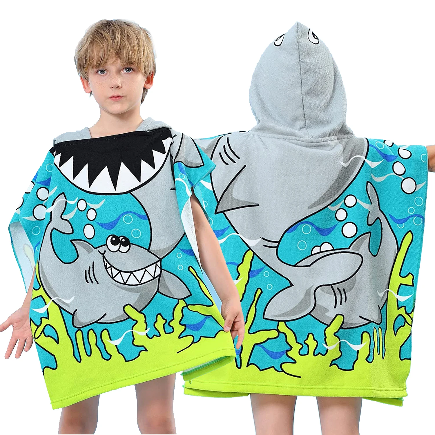 Cartoon Bath Towels for Children Kids Unicorn Shark Mermaid Hooded Cape Boys Beach Cloak Girls Bath Robes Baby Animal Capes